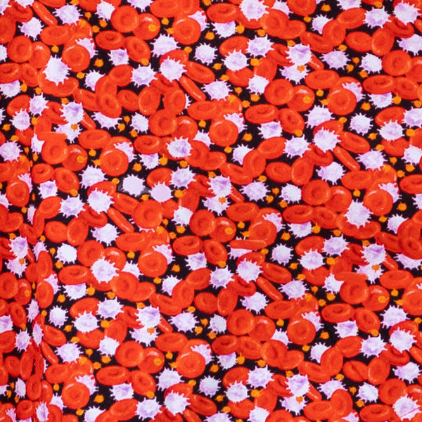 - Bold anatomical print: detailed illustrations of erythrocytes, leukocytes and platelets bring biology into everyday wear
