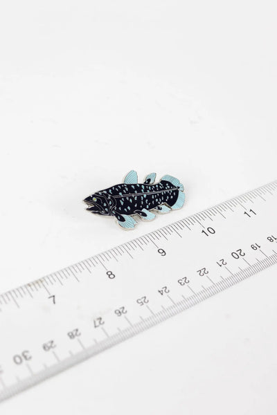 Embrace the wonder of ancient life with this exquisite coelacanth pin.