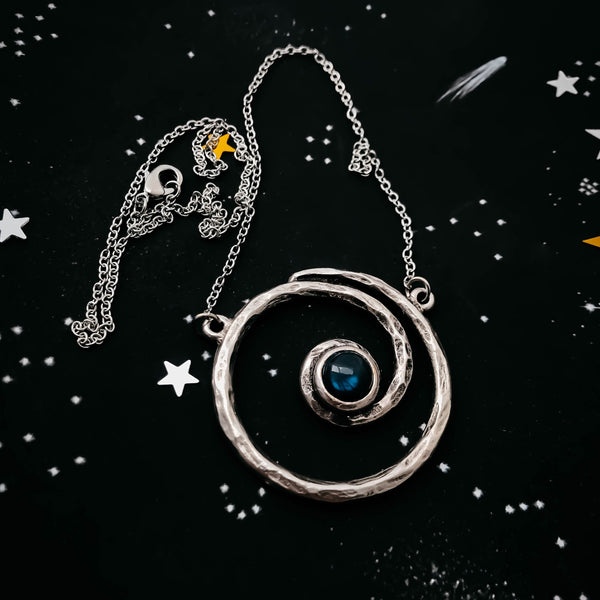 Bring the grandeur of our galaxy into view with the Milky Way Spiral Silver Pendant with Labradorite. With its hammered silver‑tone spiral design and natural labradorite stone at the center, this necklace evokes the swirling arms of the Milky Way and invites curiosity about our cosmic home. It’s perfect for students, educators, space lovers, or anyone who enjoys accessories grounded in science and style.