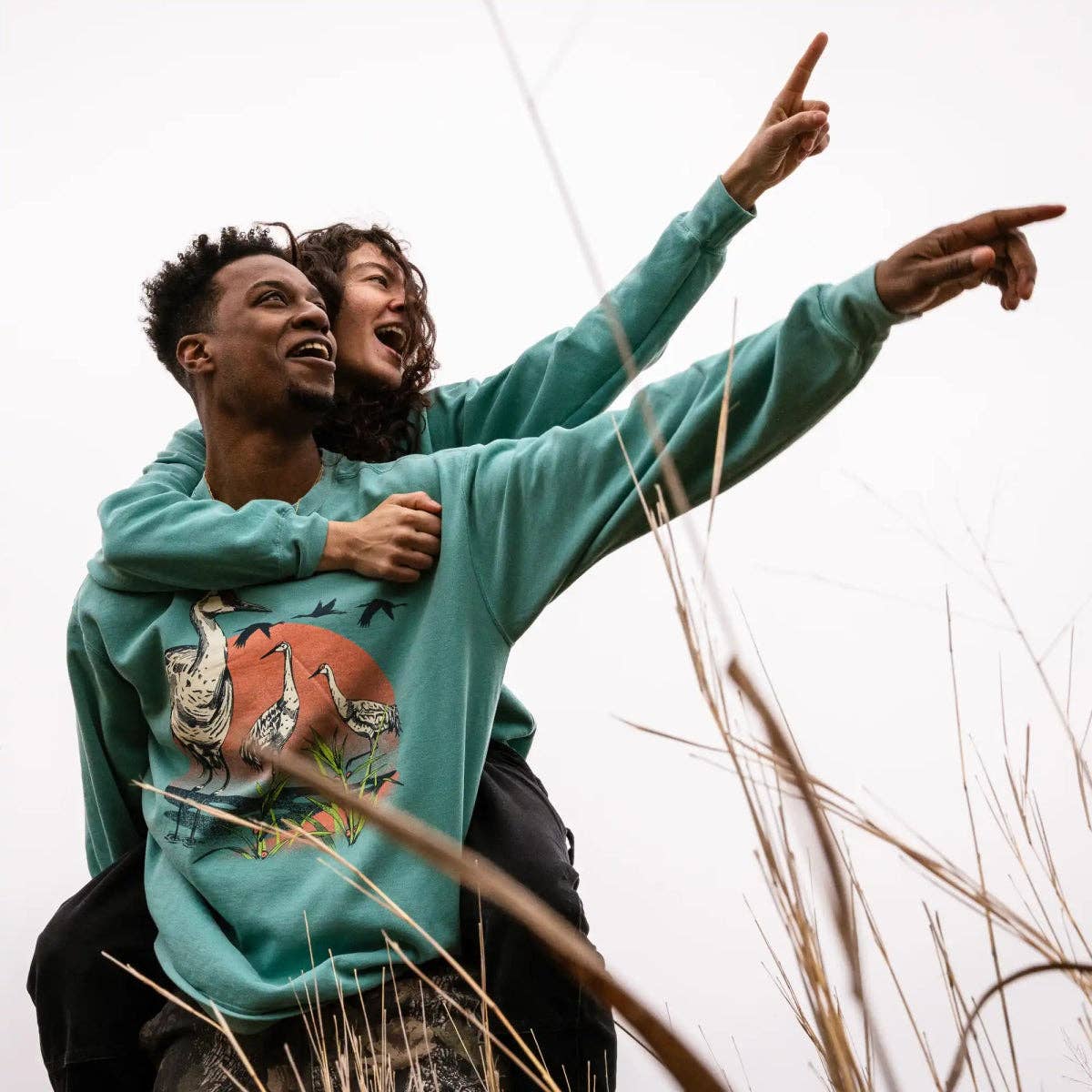 Celebrate the beauty of Sandhill Cranes with this striking sweatshirt. Featuring detailed artwork of these iconic birds, it highlights their majestic presence and communal gatherings during migration along Nebraska’s Platte River.