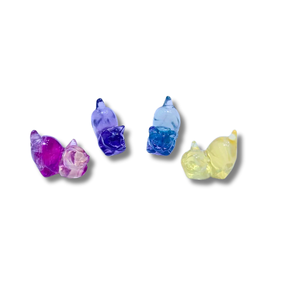 These small cat carvings are made from natural fluorite, a mineral prized for its range of colors and natural translucency. Available in two poses—playing and sleeping—each piece highlights the banding and clarity of the stone while capturing lifelike feline forms.