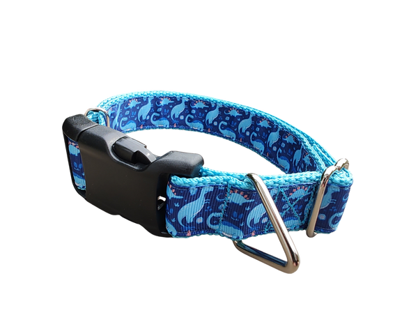 Add a playful touch to your dog’s walks with this Blue Dinosaur nylon collar.