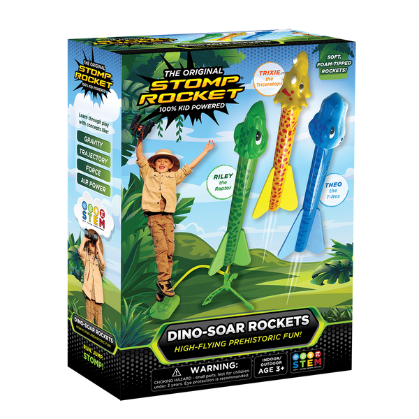Step outside, stomp, and watch the dinosaur rockets soar into the sky with this exhilarating and educational toy.