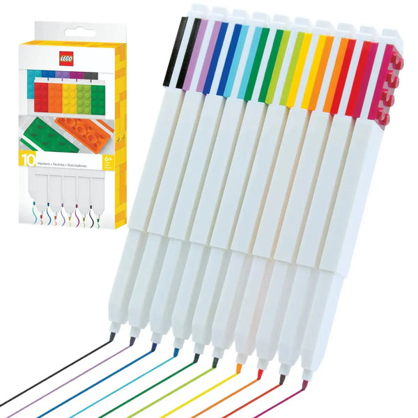 Bring bold color and creative flair to any project with the LEGO Marker 10 Pack. Designed for young builders and seasoned creators alike, each marker features two genuine 2x4 LEGO plates—imported from Denmark and precisely placed—so you can build, stack, and customize while you draw. The rectangular barrel keeps your markers from rolling away, and the fine tip lets you add detail with ease.