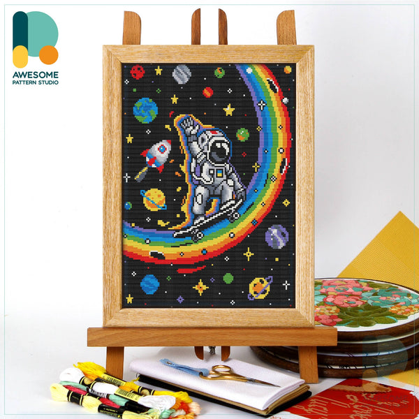 Create your own space-inspired masterpiece with the Space Skater Cross Stitch Kit and celebrate the excitement, color, and imagination of the cosmos in a fun and engaging way!