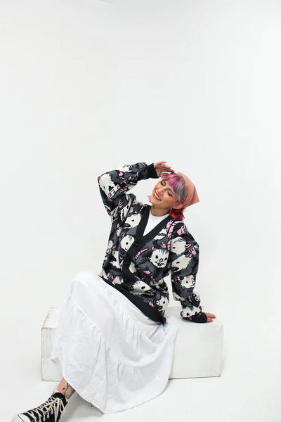 Cozy, playful, and effortlessly charming—the All the Possumbilities Cardigan is a statement piece for those who love a touch of whimsy in their wardrobe. Made from a soft and breathable blend of viscose, cotton, polyester, and nylon, this knit cardigan is perfect for layering through every season. With its relaxed fit and delightful design, it’s as fun as it is comfortable. Whether you're curling up at home, heading out on an adventure, or simply embracing the day’s endless possumbilities, this cardigan is ready to keep you warm and stylish.
