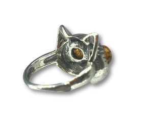 Playful, elegant, and full of feline charm, our Amber Cat Face Ring is perfect for cat lovers who appreciate a touch of whimsy in their jewelry. The sleek, sculpted cat face features pointed ears and subtle whisker details, centered around a warm, glowing piece of genuine Baltic amber that brings the design to life. With eyes full of mystery and amber’s natural warmth, this ring captures the independent spirit and quiet grace of our favorite feline companions.