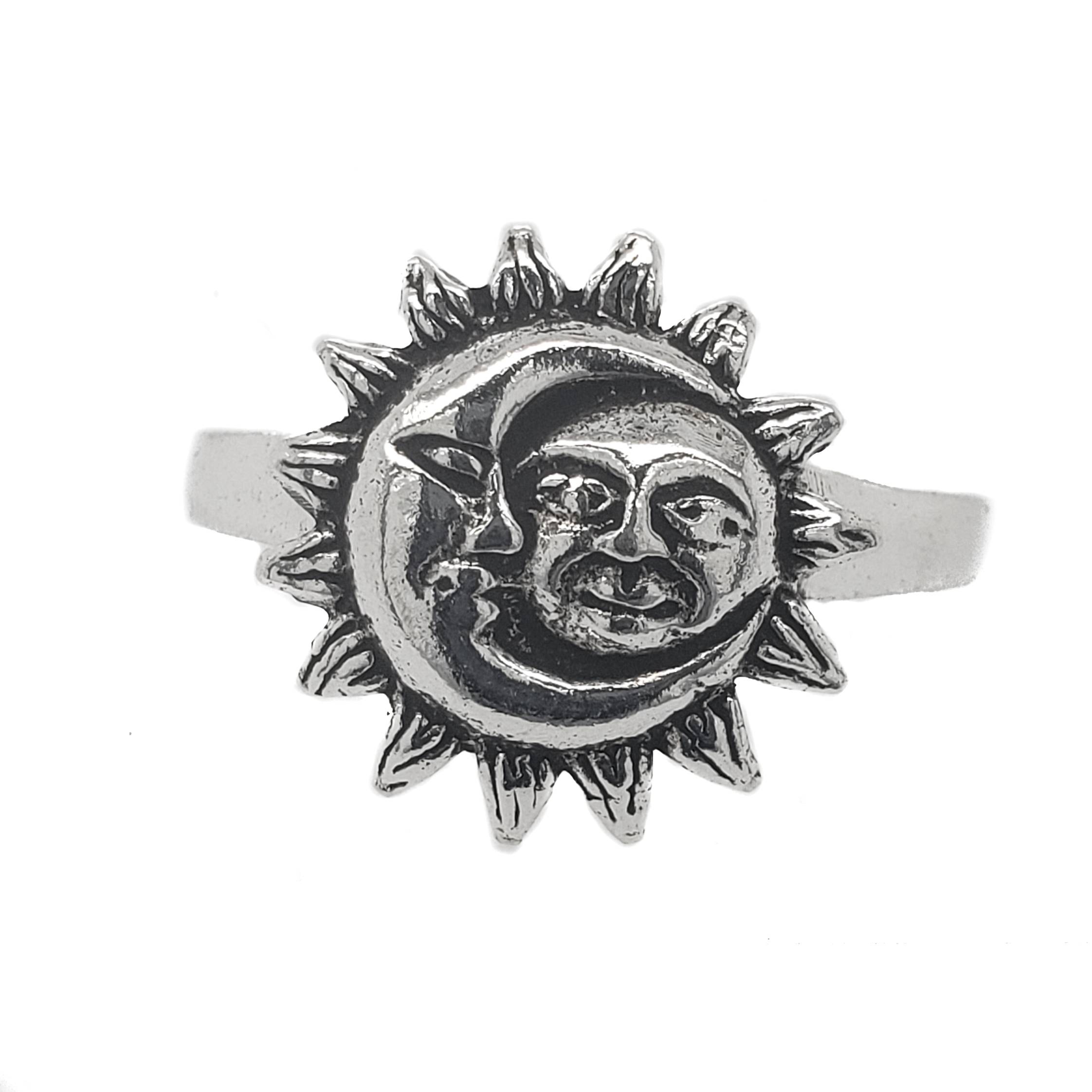 This sleek sterling silver ring features a minimalist crescent moon and sun design — a perfect blend of night and day, bold and soft.