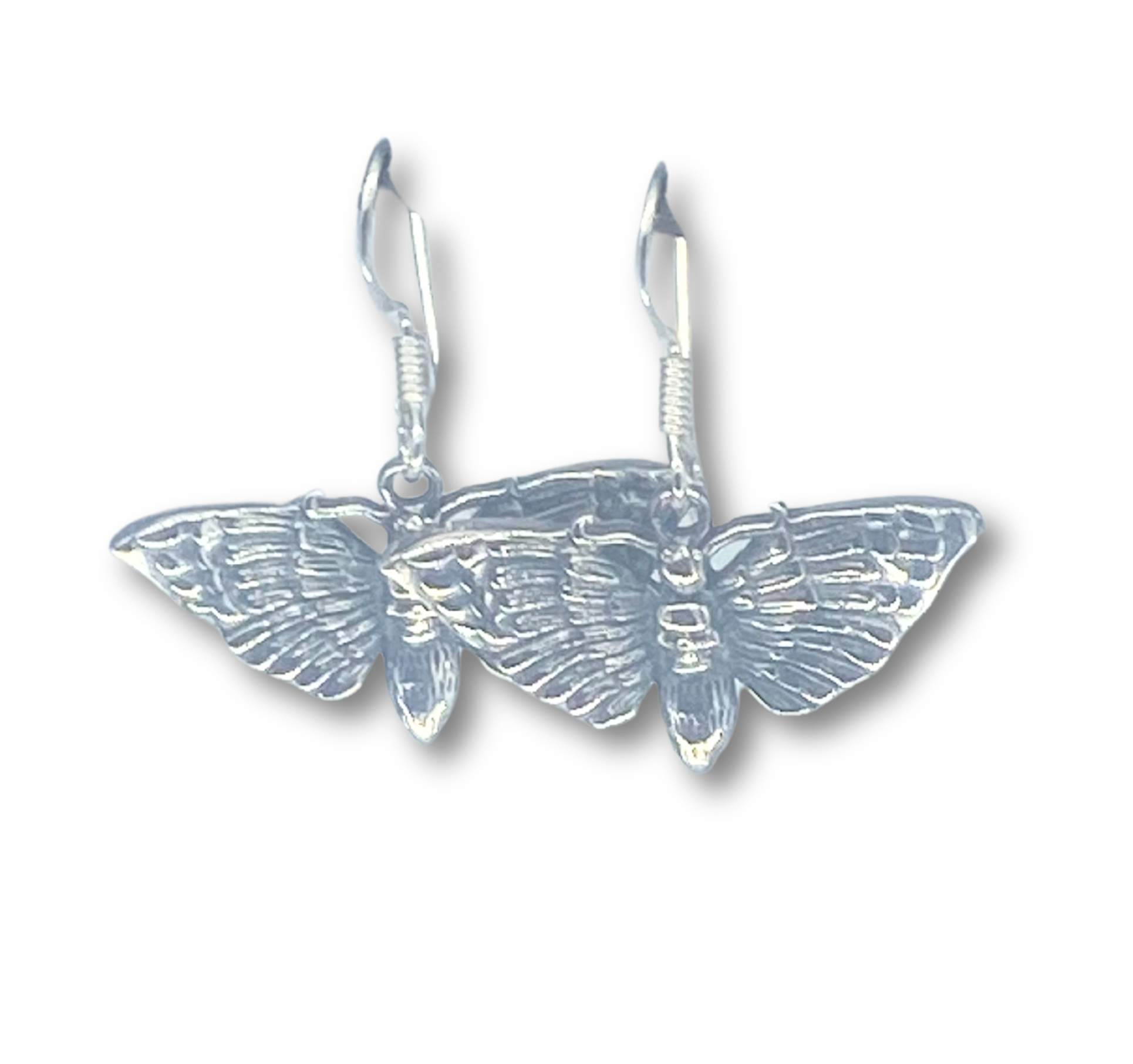 Elevate your style with these exquisite Death's-Head Hawk Moth Earrings, crafted from high-quality sterling silver. Inspired by the hauntingly beautiful moth known for its skull-like marking, these earrings feature intricate detailing that captures the delicate wings and eerie allure of this mysterious creature.