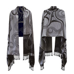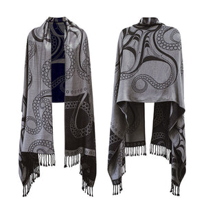 Embrace elegance and cultural artistry with this 77" x 26" jacquard-woven shawl, featuring the Nuu design by Haida artist Ernest Swanson. The octopus, known for its intelligence and adaptability, is depicted in a flowing pattern that adds a sophisticated touch to any ensemble.