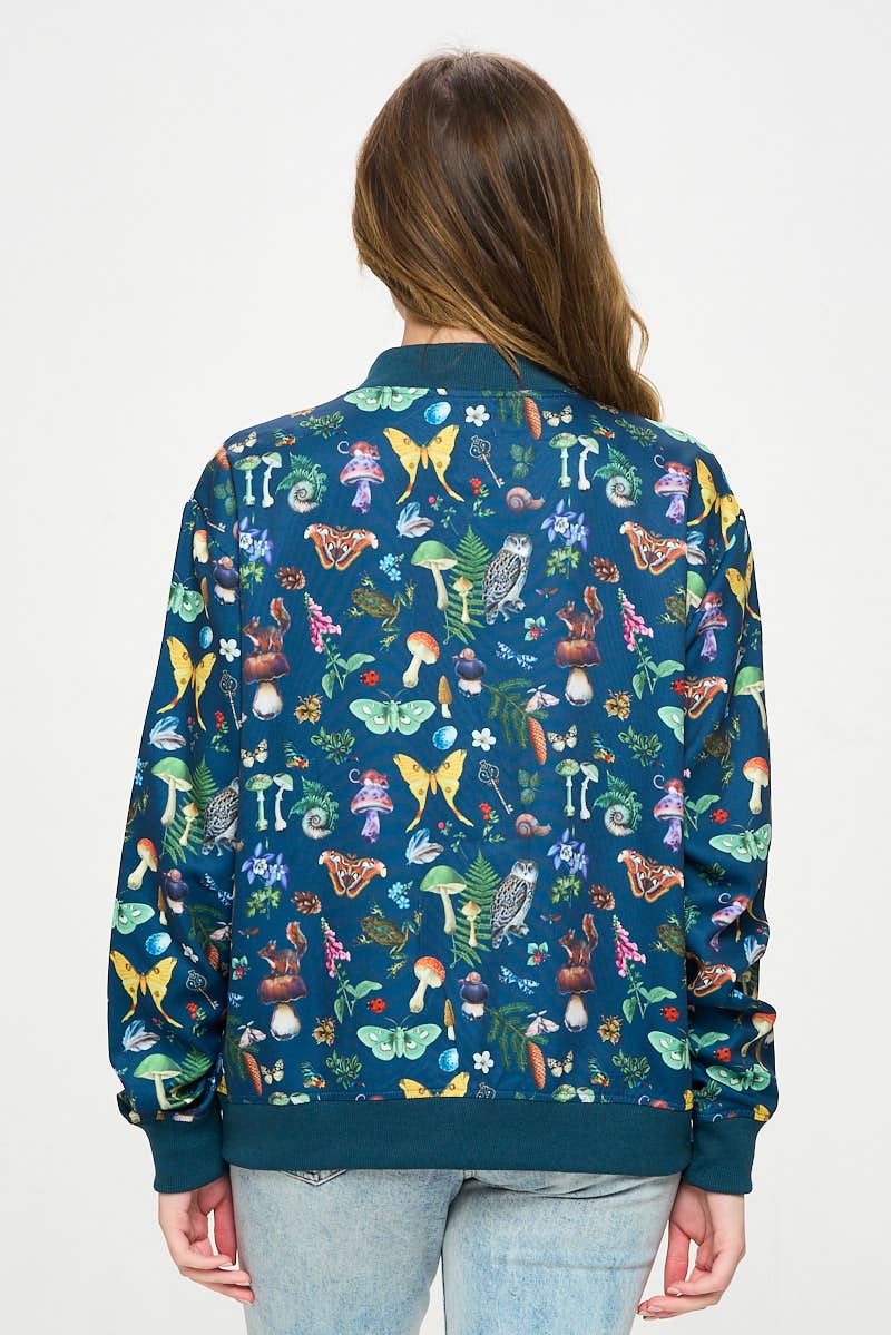 Teal Moth & Mushroom Bomber Jacket