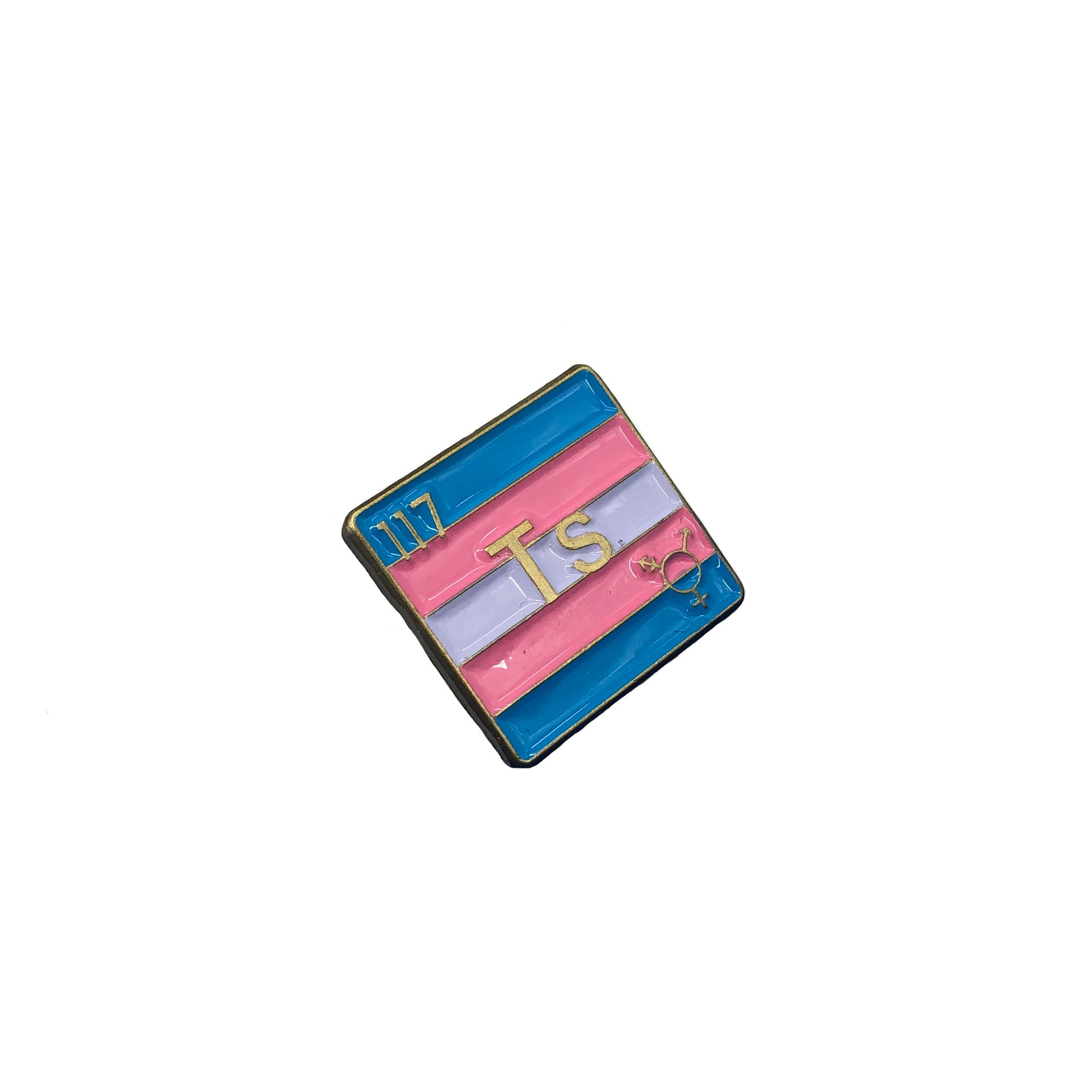 Celebrate transgender visibility with the Transgender Pride Enamel Pin, inspired by the chemical element Tennessine (symbol Ts, atomic number 117). This pin features the pink, blue, and white stripes of the Transgender Pride flag with a subtle Trans Pride symbol in the corner, offering a stylish way to show support for the community.